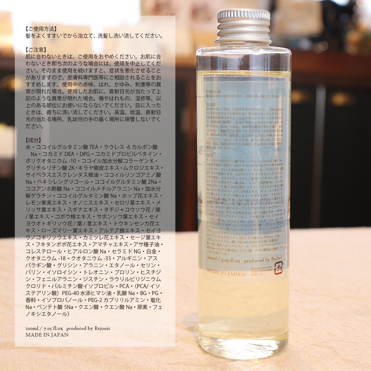 ◉オーガニック界面活性剤とコラーゲン活性剤が傷んだ髪をしっとり洗い上げ、ケラチンがダメージホールを補修した指通りの良い髪に仕上げます。セージ葉エキスなど18種類の植物エキスが頭皮を整え、髪に水分を与えることにより、しなやかでまとまるヘアスタイルを持続させます。